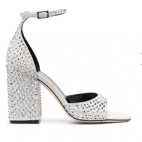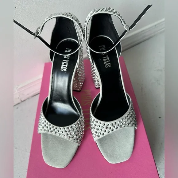 NEW IN BOX Paris Texas Holly Fiona 100mm Heeled Sandals in Silver Diamond 8.5