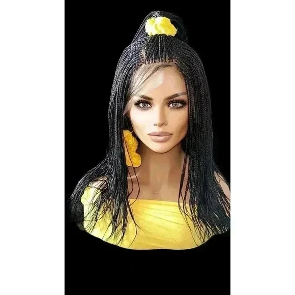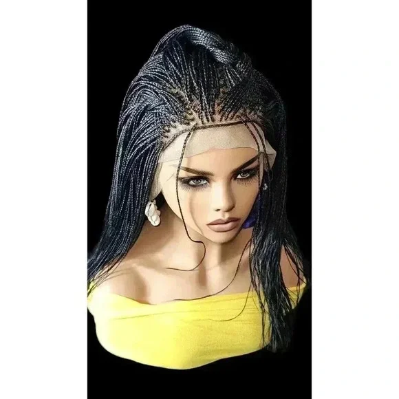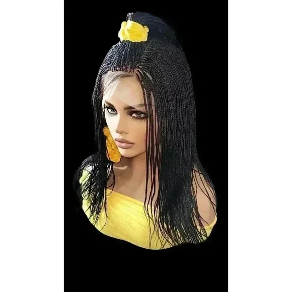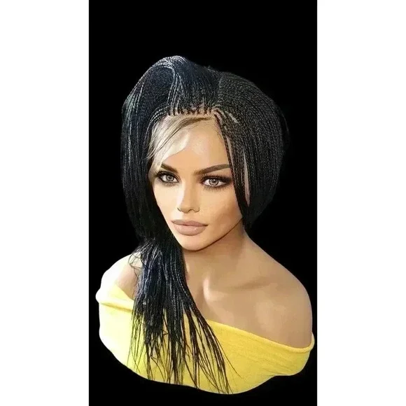 Introduction: "Elevate your style with the Alina Style Micro Braids Lace Closure Wig. This handcrafted masterpiece is the epitome of sophistication and elegance."Key Features:Handcrafted Micro Braids: Each Alina Style Wig features millions of meticulously hand-braided micro braids, showcasing the skill and precision of our artisans.Jet Black Color: The striking jet black color adds a touch of glamour and sophistication to any look.Long Length: The flowing length of the wig allows for versatile styling options, from casual to glamorous.Lace Closure: full lace wig ensures a seamless blend with your hairline, providing a natural look that´s virtually undetectable.Benefits:Lightweight: Despite its length and the number of braids, the Alina Style Wig is lightweight, ensuring comfortable wear all day long.Time-Saving: Enjoy the beauty of intricate braids without the time commitment of getting your hair braided