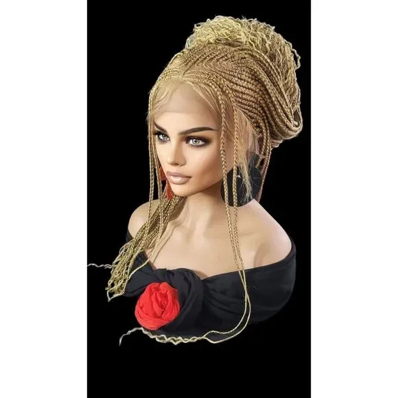 Braided Full Lace Wigs, 24" Knotless Braids Wig with Ghana Weave Blonde Wig NWT