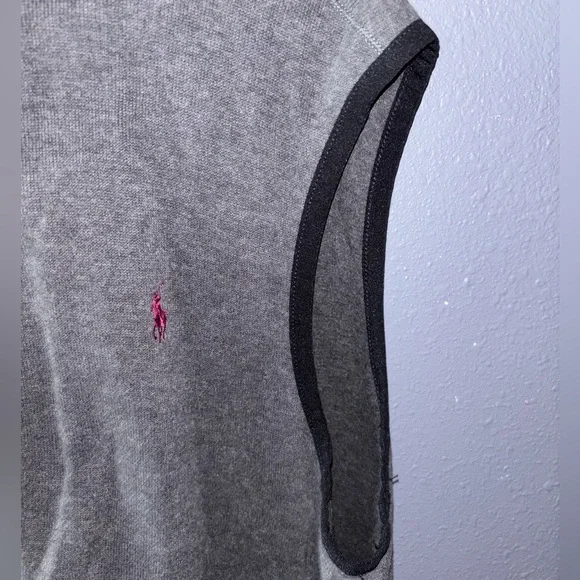 Stay stylish and comfortable with this Polo by Ralph Lauren Men´s Gray Sleeveless Jacket. Perfect for layering, this jacket offers a sleek look with its classic gray color. Full zip closure. Red pony logo. Outstanding condition from a smoke free home.