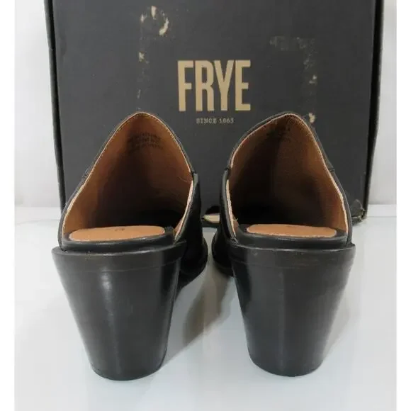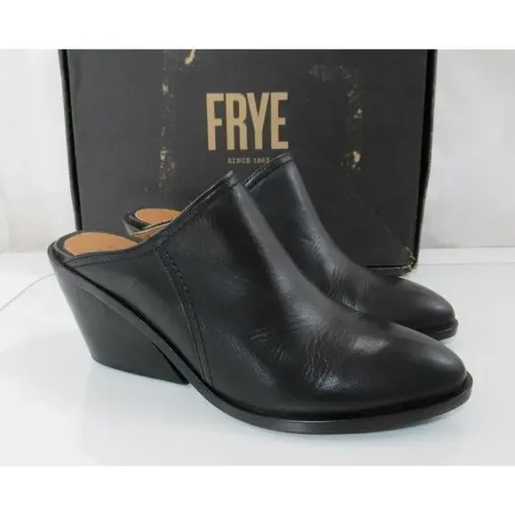 Women´s Shoes Frye Serena Mule Slide Leather Inverted Wedge Heels Black Size 9