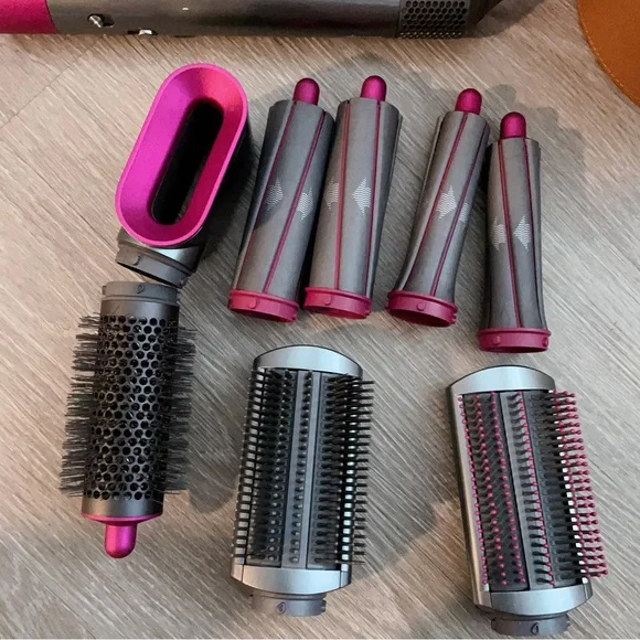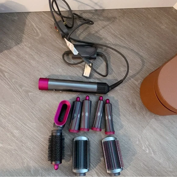 Compact Dyson hair tool set. Includes multiple attachments. Stylish gray and pink design.Excellent Preowned Condition Details in PicturesFeel free to make an offerHappy to do bundle deals for a discount.Final Sale
