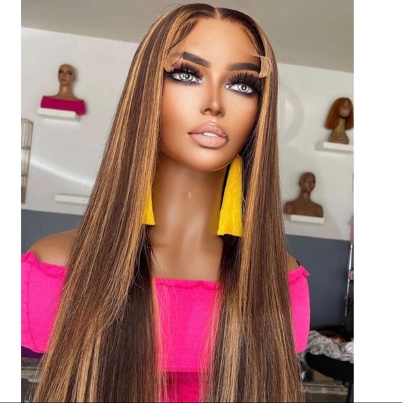 Length 18”150 density 13*4 Cap dark brown to honey blonde highlightpopular trendy balayage highlight colors for you to choose, very stylish but low maintenance, make you easily...
