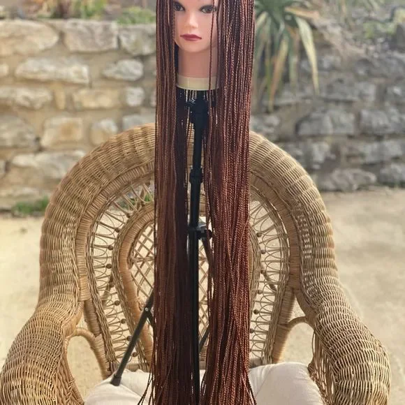 70 inches miduim size knotless braided wigMade on a 100% Swiss lace frontal lace wigGuaranteed to last for years if properly maintainedOne size capLight and easy wear