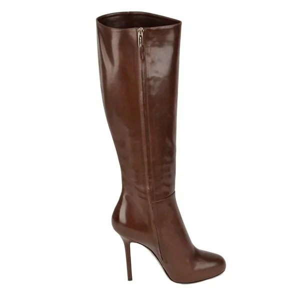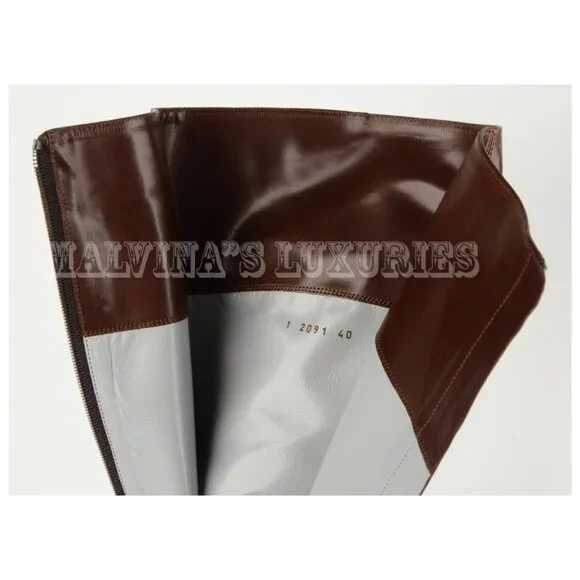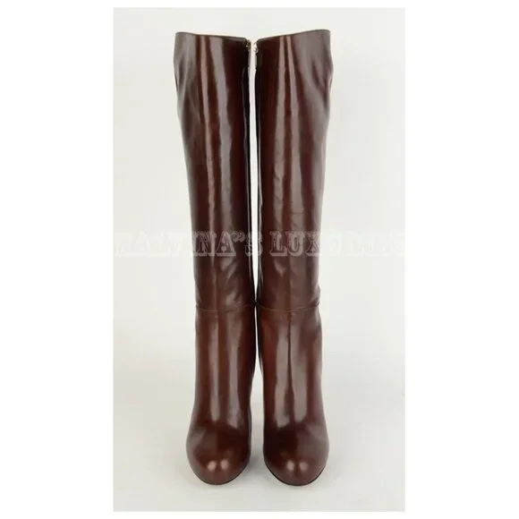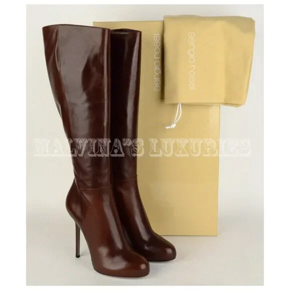Designer: Sergio RossiSize: Italian 40 / US 10 (conversion per designer´s website)Condition: Authentic and Brand NewStyle Name / Number: ´Barbie´Material: Leather Upper, Leather Lining and Leather SoleUnique Features: Tall Boots with Almond Toeline, Concealed Zip Fastening Along Inner Side, High Stiletto HeelColor: Chocolate Brown, please note that color appearance may vary depending on your monitor settingsRetail: $1,370 plus taxMeasurements: Please ask for measurements, Heel Height is almost 5", Calf Circumference is 15"Malvina´s Luxe (Malvina´s Luxuries) is a trusted name in designer merchandise since 2001, we pride ourselves on offering authentic, brand new items that are carefully packaged and come from a smoke free environment. Our solid reputation on other platforms ensures that you can shop with confidence. Enjoy amazing deals on luxury items and join our community of satisfied customers!