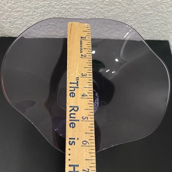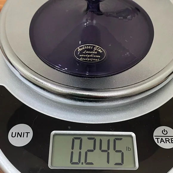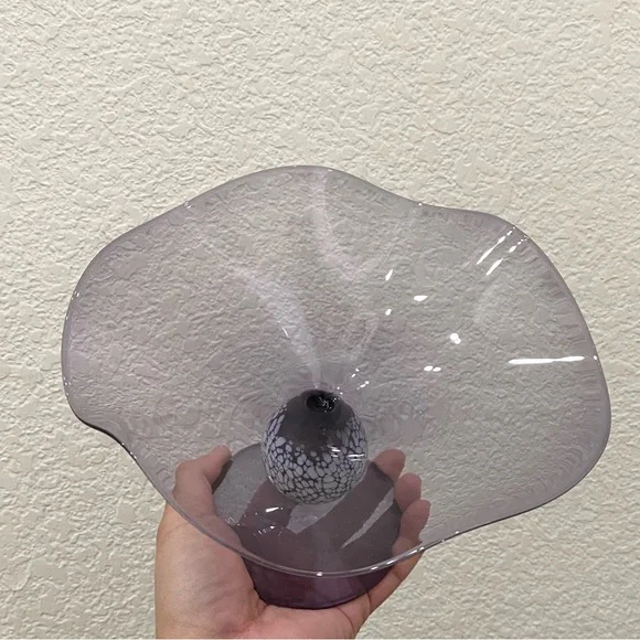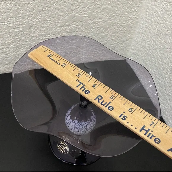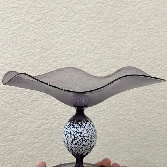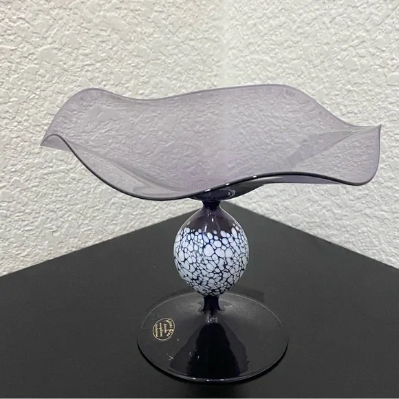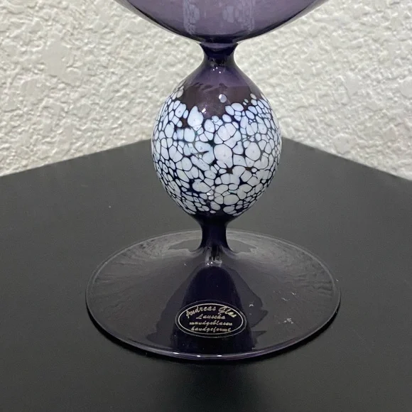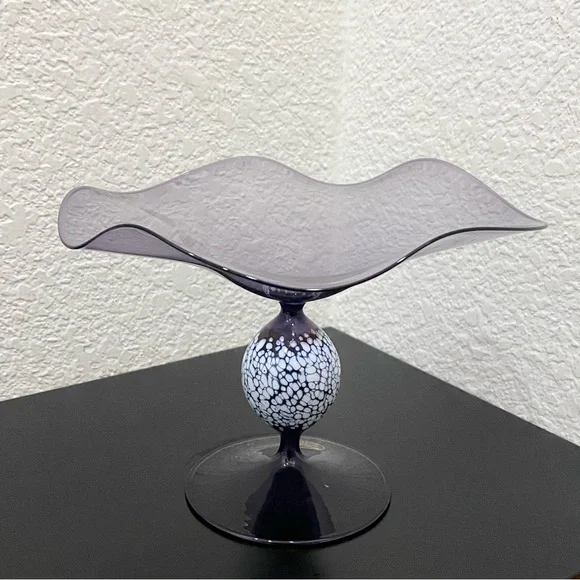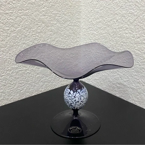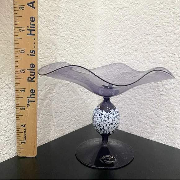 Vintage ANDREAS GLAS Lauscha Amethyst Purple Ruffled Pedestal Compote Candy Dish. Pre-owned in great vintage condition! No major flaws to note. This gorgeous piece is very fragile and lightweight. See photos for details and measurements. You will get exactly as pictured!Feel free to ask questions. All sales are final! NO returns. Thanks for looking.Disclaimer: Due to unique nature of Vintage items - imperfections & flaws are normal consistent to age & use/display. Cleaning/polishing is a buyer’s responsibility and I leave the item “As Is!”. Pictures are actual photos of the item. Zoom in photos for details.