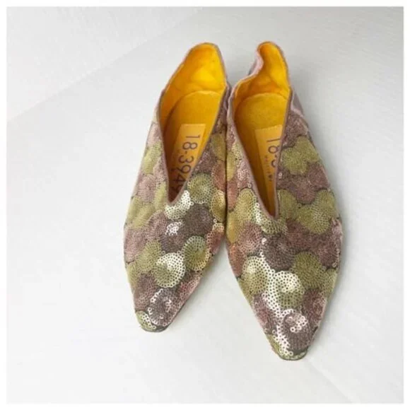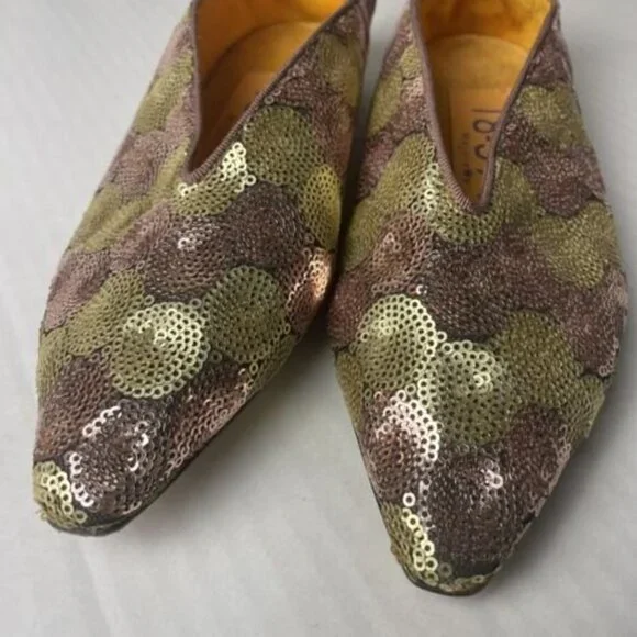 18-3949 Majoree Sequins Gold Pink Loafers shoes women’s Size 37 Made In Italy‌‌