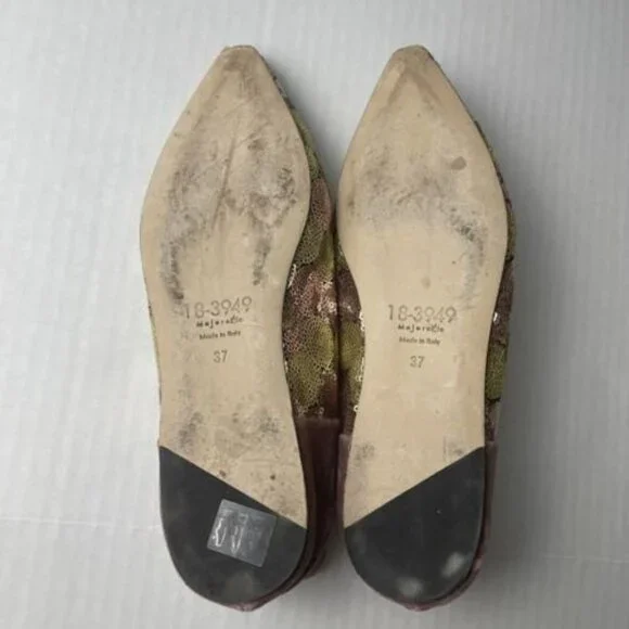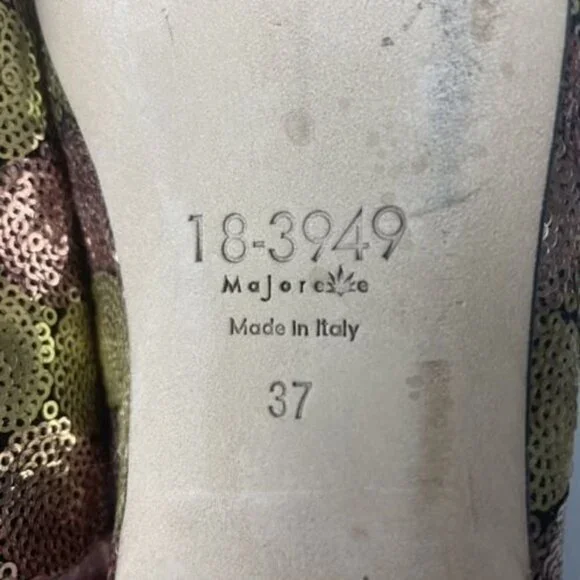 18-3949 Majoree Sequins Gold Pink Loafers shoes womens Size 37 Made In Italy.