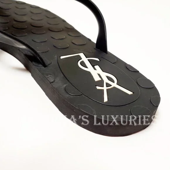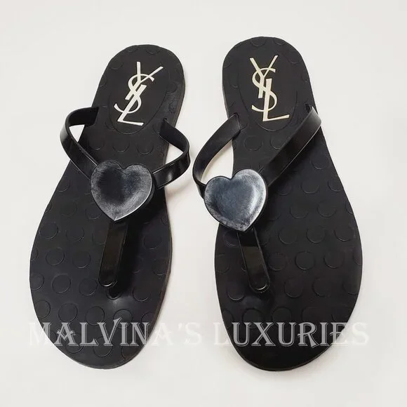 Designer: Yves Saint LaurentSize: marked size is 38Condition: Authentic and Brand New, No BoxMaterial: RubberUnique Features: Lux rubber flat sandals in black rubber. Tonal rubber sole. Thong style with heart detail. Contrasting YSL signature on the insole.Color: Black, please note that color appearance may vary depending on your monitor settingsMeasurements: Please ask for measurementsMalvina´s Luxe (Malvina´s Luxuries) is a trusted name in designer merchandise since 2001, we pride ourselves on offering authentic, brand new items that are carefully packaged and come from a smoke free environment. Our solid reputation on other platforms ensures that you can shop with confidence. Enjoy amazing deals on luxury items and join our community of satisfied customers!