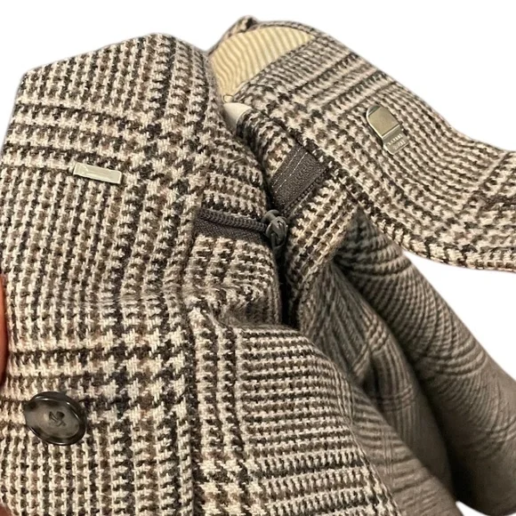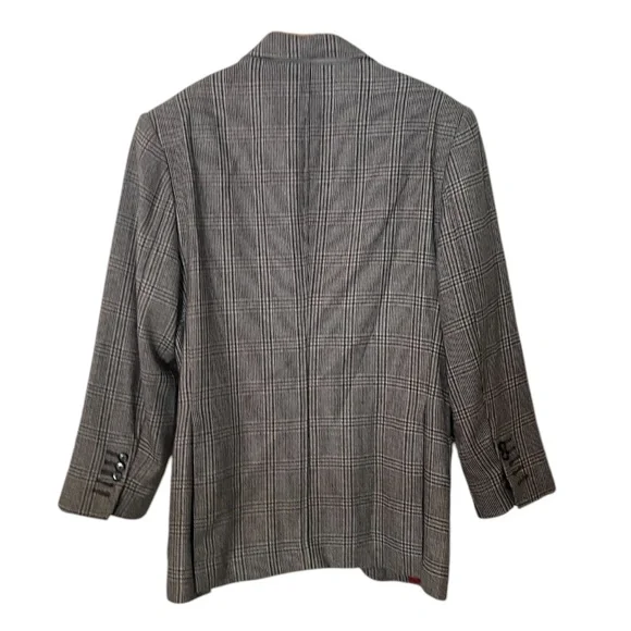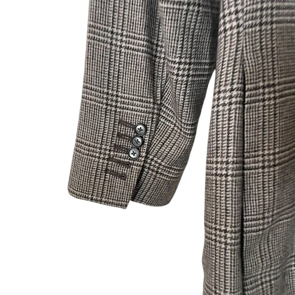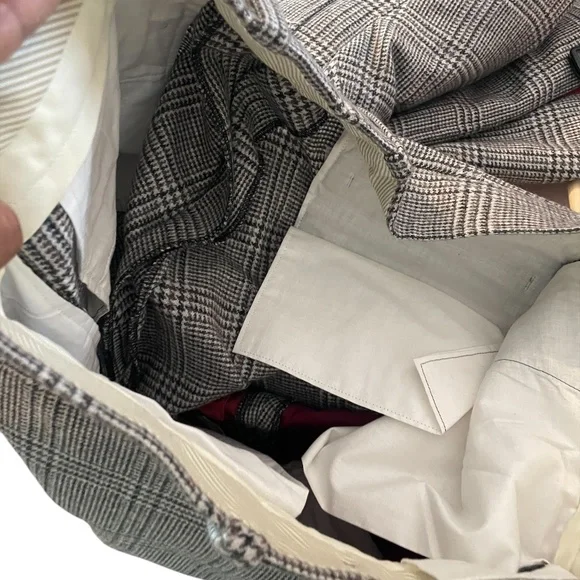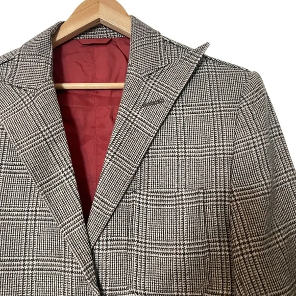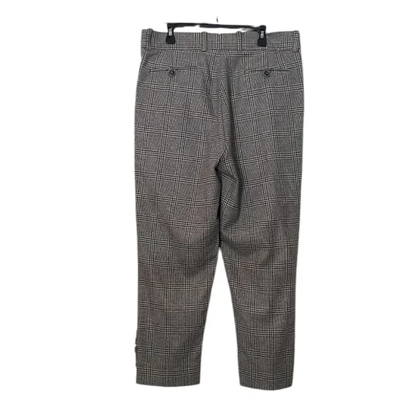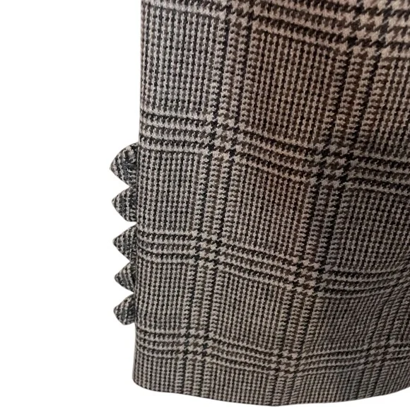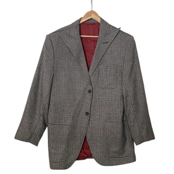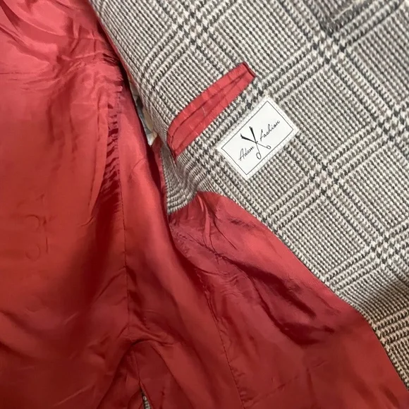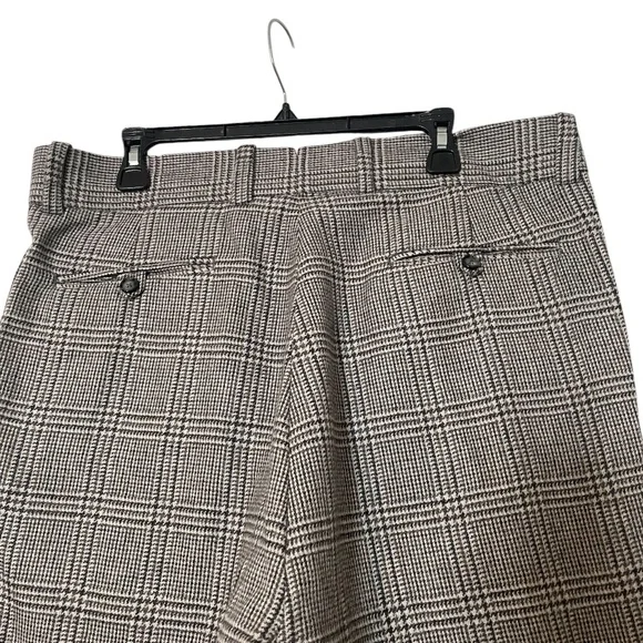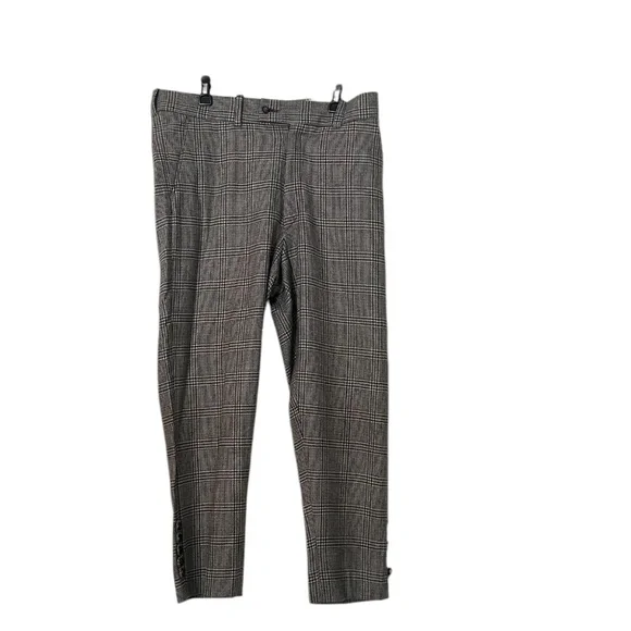 SUIT IS CUSTOM MADE Side Button around the foot opening, please see photo Jacket: modern fit, Singlebreasted,2 button, peak lapels, padded shoulders, functioning buttoned cuffs, chest welt pocket, Two frontpockets, two internal pockets, side (two) vents, fully linedTrousers: modern fit, belt loops, four pockets, non-pleated (flat front), Partially lined (lined to the knee);BUTTON closure, WOOL BLEND Windowpane Plaid Dry Clean OnlyApprox. Measurements: Waist 38" Rise 14" Inseam 30" Total Length 40"Pit2pit 21" Shoulder 19" Sleeve Length 22" Waist 20" Length 31" Pet And Smoke Free HomeHARA