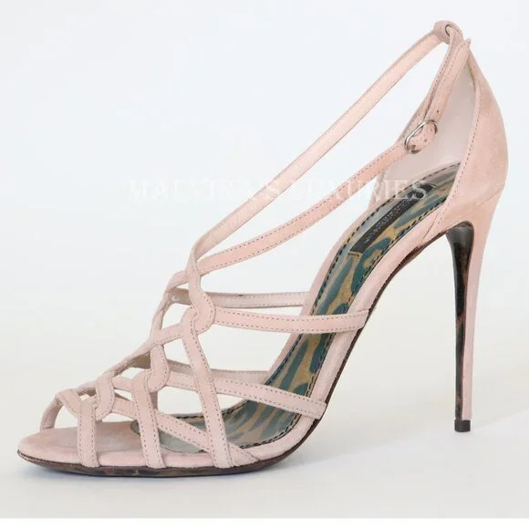 DOLCE & GABBANA SHOES SUEDE LEATHER STRAPPY HIGH HEEL NUDE BEIGE sz IT 39 US 9