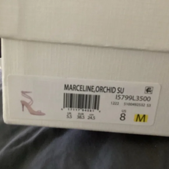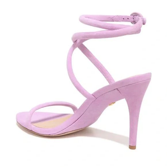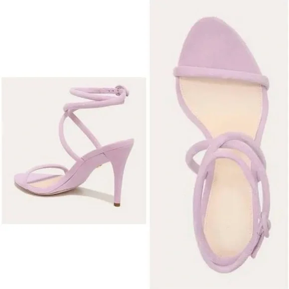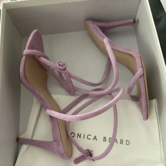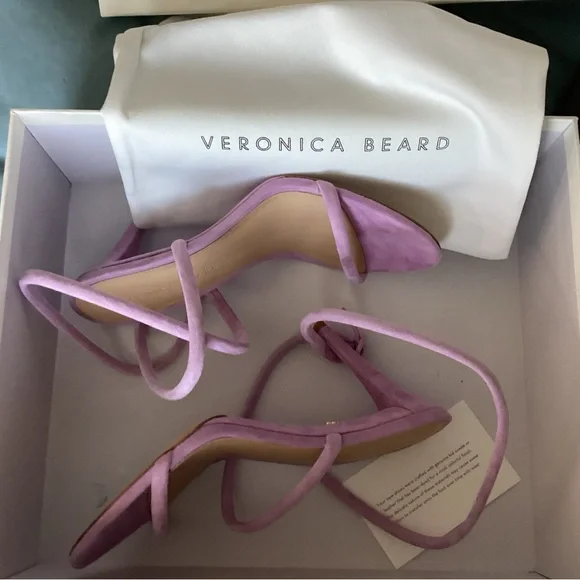 VERONICA BEARD MARCELINE ORCHID SUEDE LEATHER CRISSCROSS ANKLE STRAP SANDALS FEATURING Adjustable wrap around ankle strap with buckle closure Almond open toe Tapered 4.25” stiletto heel Color is called orchid a very pale misty purple colorNew in original box with dust coverSticker tags on bottomSize 8