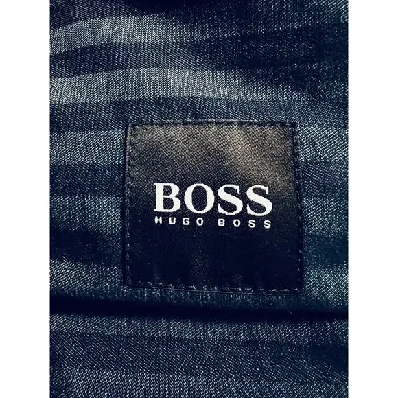 EUC wonderful preloved condition barely wornBrand: Hugo BossSize on Tag: 36 RColor: Navy BlueBlazer / Jacket2 ButtonSlim FitCuffed sleeves Red, white & blue stripe under collarSingle Vented in backStretchTextured70% Cotton 23% Polyamide 7% ElastaneDry CleanMade in UkraineMeasurements laying flat unstretched):Shoulders - 17.5"Chest (armpit to armpit) - 20" (unstretched)Waist - 18" (unstretched)Length - 27" (from top of shoulder to hem)Sleeve Length - 25" (seam to cuff)