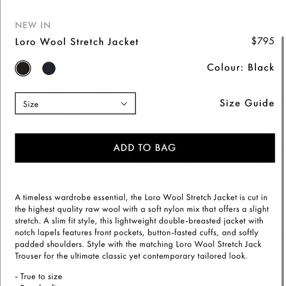NWT $795 JosephDon super 100 blackwool blazer size 38