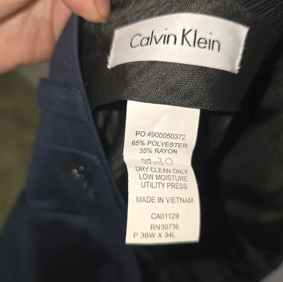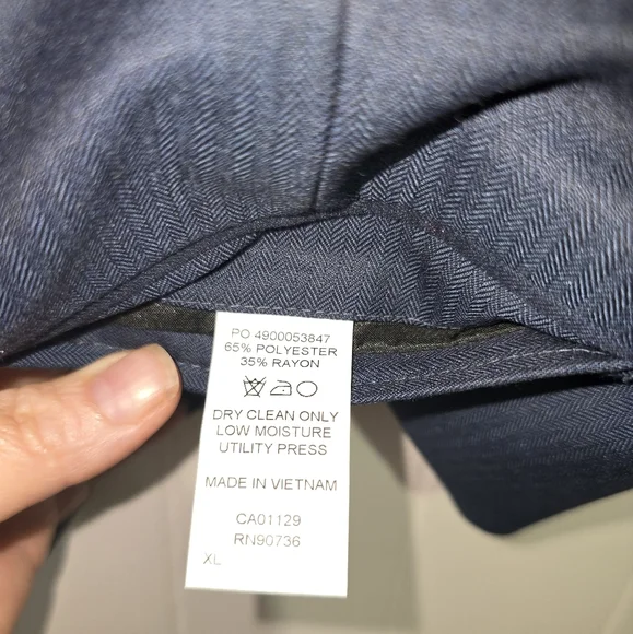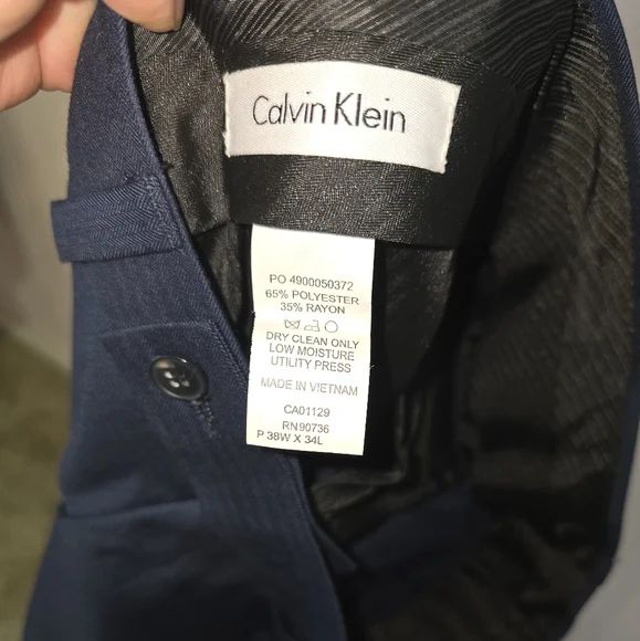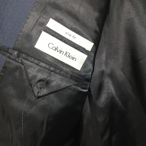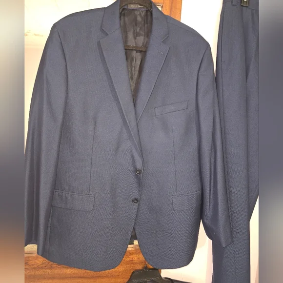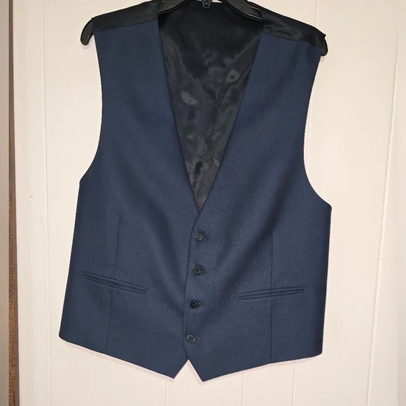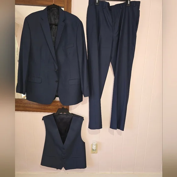 Slim Fit 3pc navy suit. 46R jacket, XL vest, 38x34 pant