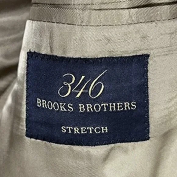 ***** PLEASE BUY WITH CONFIDENCE! HAS GRANTED US AMBASSADOR STATUS TO RECOGNIZE OUR CONSISTENTLY EXCELLENT QUALITY & CUSTOMER SERVICE *****This is a handsome brand new Brooks Brothers Dartmouth sportcoat! It´s styled in comfortable stretch cotton with a 2 button front and a single back vent for a classic silhouette. And the classic tan color goes with everything. This blazer is perfect for business or for a night out - it´ll have you looking great in comfort!I also have this sportcoat in a 2 button style in a separate listing.Available Sizes:38 Regular 44 Long48 LongMaterial: Cotton Stretch BlendColor is Tan3 Button Front4 Button Sleeves2 Pockets on Lower Front, 1 Chest PocketSingle Vent in Back is Still Sewn ClosedFully LinedHere are the Measurements for Each Size:38 Regular: Chest 40.5 Inches (20.25 Inches Pit to Pit), Sleeve Length 24.5 Inches, Length 30 Inches, Shoulder Width 18.5 Inches.44 Long: Chest 46 Inches (23 Inches Pit to Pit), Sleeve Length 25.75 Inches, Length 32.5 Inches, Shoulder Width 19.75 Inches.48 Long: Chest 50 Inches (25 Inches Pit to Pit), Sleeve Length 26.75 Inches, Length 33 Inches, Shoulder Width 20.5 Inches.