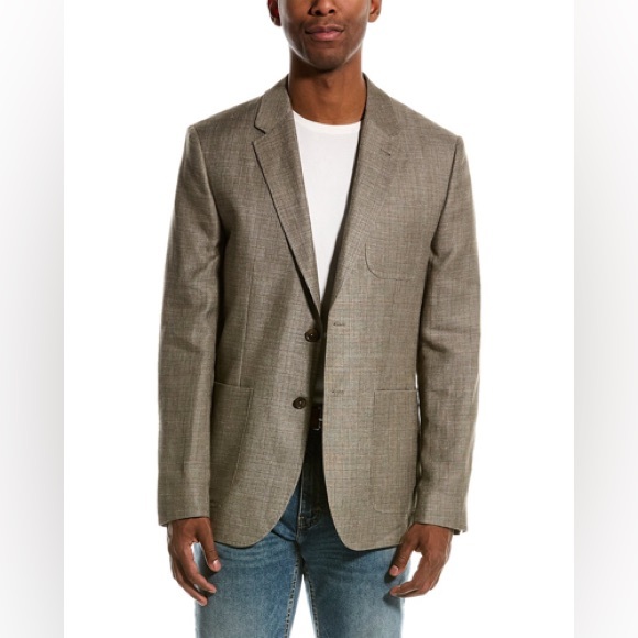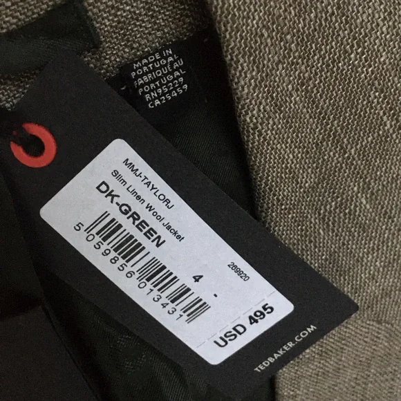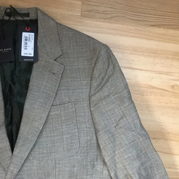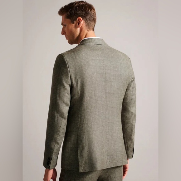 Showcasing a refined style that perfectly informs desk-to-dinner rotations, accent your look with this blazer from Ted Baker. Crafted from a durable blend, it is regular in length and features an easy button-up fastening. Made with at least 50% linen. Linen is made from the fibres of the flax plant. Flax is resilient and can grow in poor soil, using less water than cotton to produce.Elevate your style with this classic tan blazer. Perfect for any occasion, this blazer offers a sophisticated look.Exposed button fastening at frontSlim fit, long sleeves, notched lapels, chest patch pocket, two side large patch pockets, single-breasted design, buttoned cuffs, English back vents, fully linedDry clean onlyMidweight, non-stretch58% linen, 42% virgin wool; lining 100% viscoseSize 4Dark Green (multi colors)Brand New with TagNew to ?Use my code: wsallyw when creating an account to receive $10 off your first purchase!