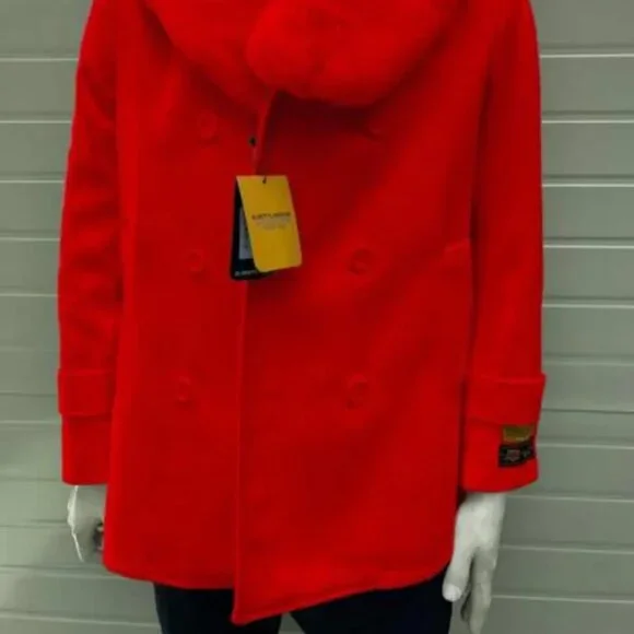 Mens Pea coats With Fur Collar - Wool Red Peacoats