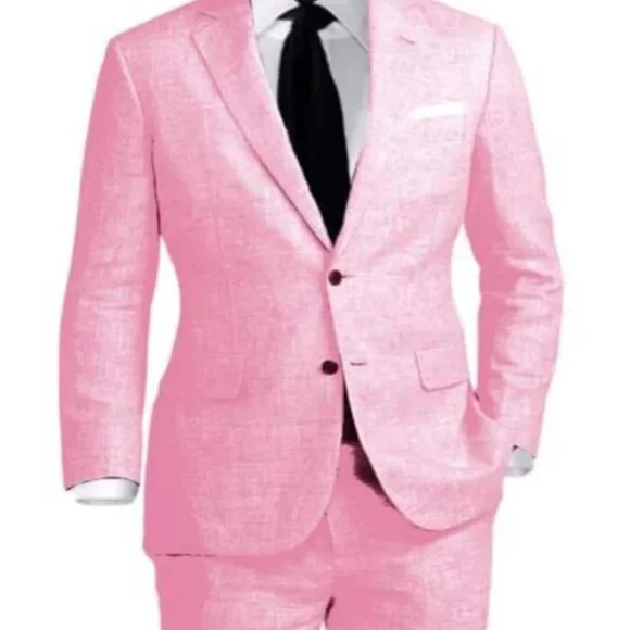 Pink Big and Tall Linen SuitTwo ButtonSpread Notch LapelSingle BreastedOne Chest PocketFlap Front PocketsFour Button CuffMaterial: LinenColor: Pink