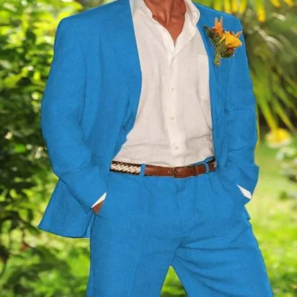 French Blue - Turquoise Big and Tall SuitSummer Fabric Light weightFlat Front pants2 buttonDual VentsSingle BreastedGreat for Hot and Humid climates