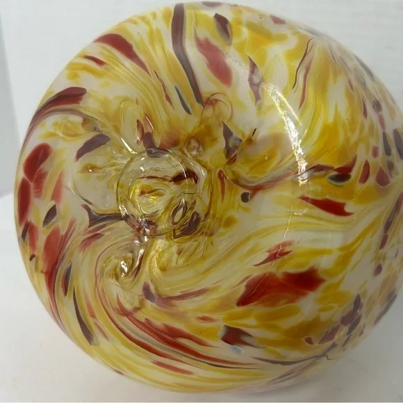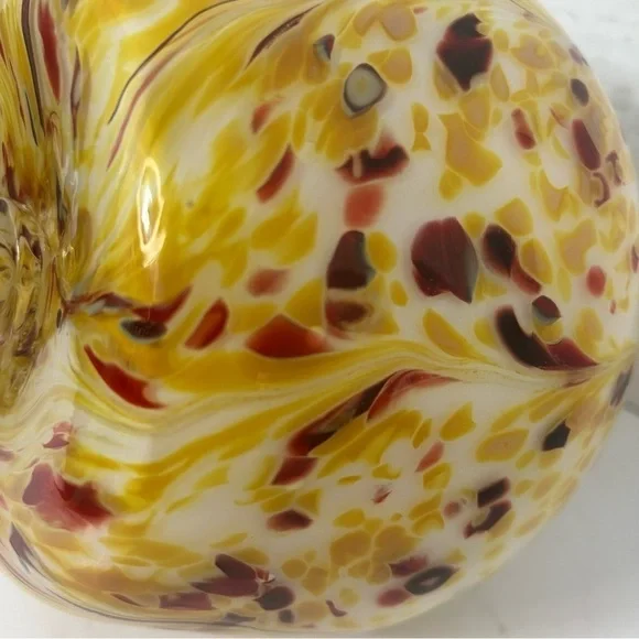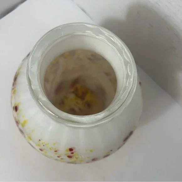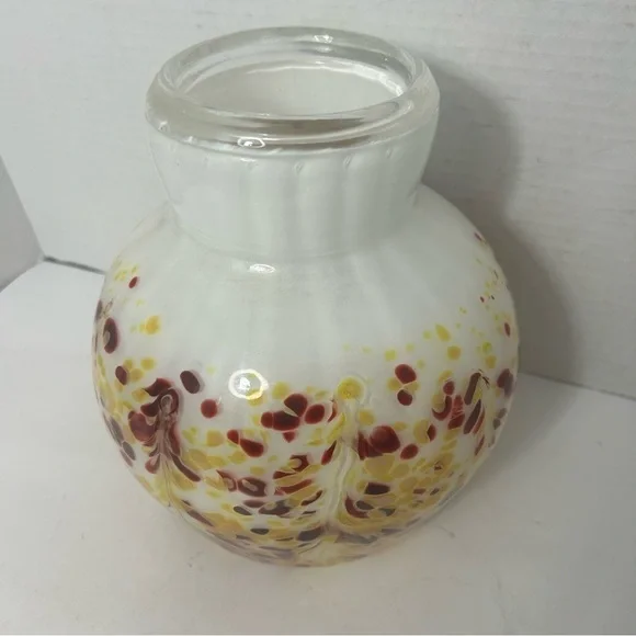 Vintage Art Glass Handblown Murano Style Vase Multicolor 7x8” Ribbed Neck
