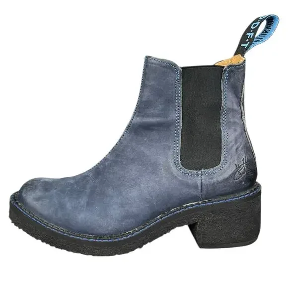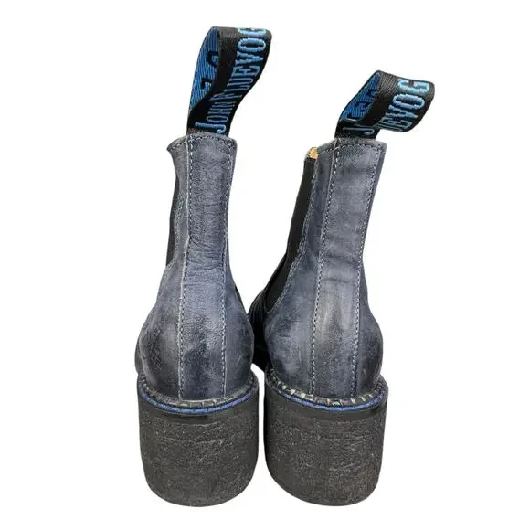John Fluevog Women’s Slacker Nap Blue Leather Ankle Boot Size US 6.5