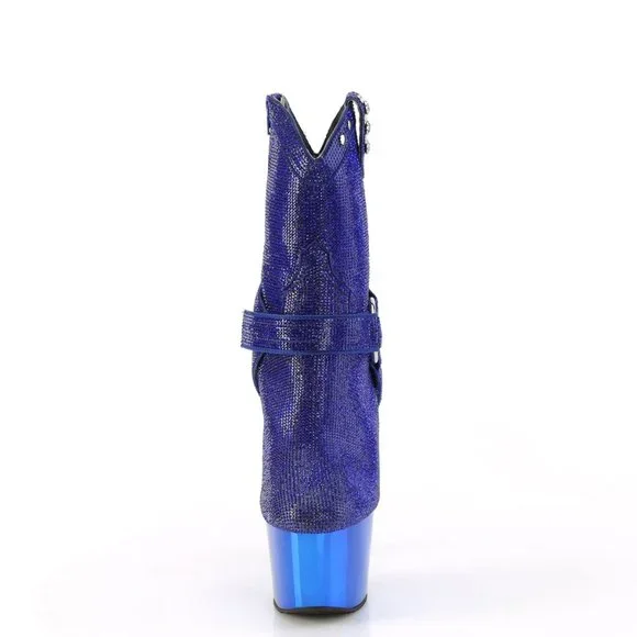 7" High Heel, 2 3/4" Platform Cowgirl Rhinestone Ankle Boots. Detachable O Ring and Straps. Inner Side Zipper Closure.Styles: dance clubbing dancer stripper dancingRODA-1029CHRS