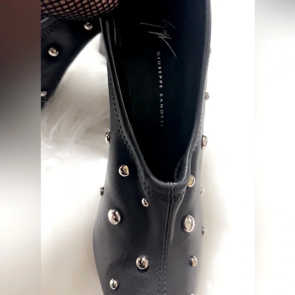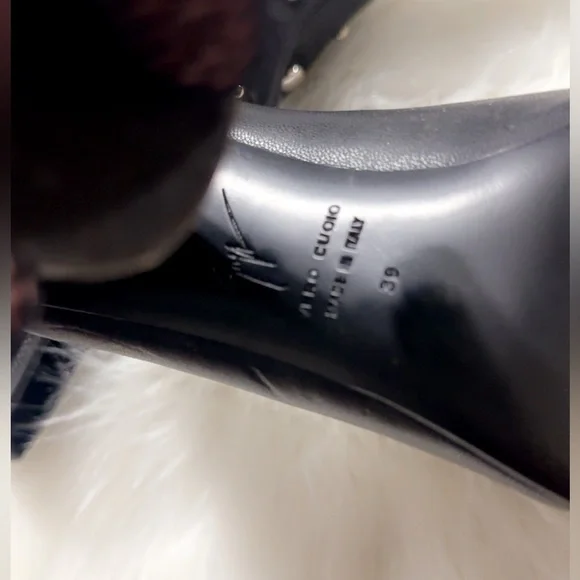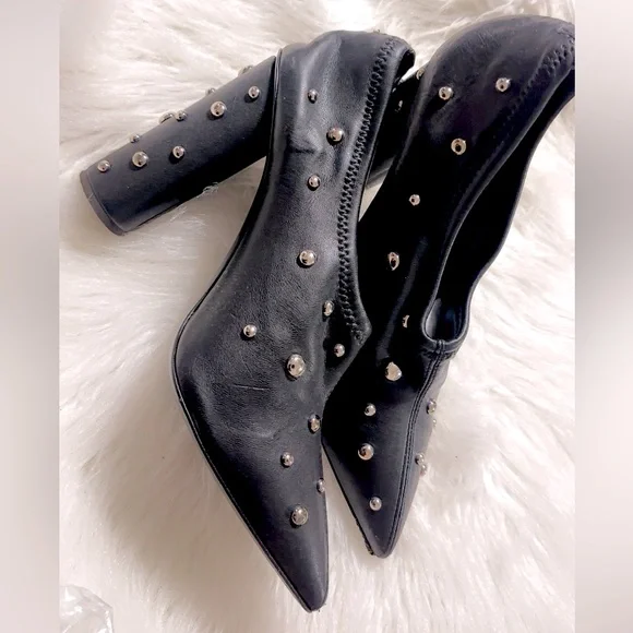 STUDDED HIGH HEELS SHOES EUR 39 US 7.5/8 Very soft and stretchable leather, The shoes are used, they still have life left in them, signs of use on the sole, scratches on some studs but they are not noticeable, and on the back inside some peeling, when you wear them it is not noticeable, they run small, the European size is 39 but fits better a size 7.5 or 8, the shoes are sold out everywhere and they look beautiful!! FIRST TWO PHOTOS FOR REFERENCE ONLY!! Please look at each photo for better reference this is part of the description.