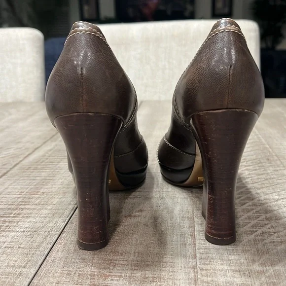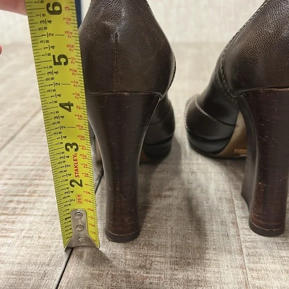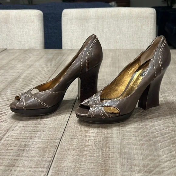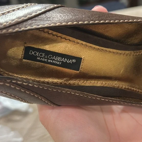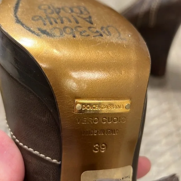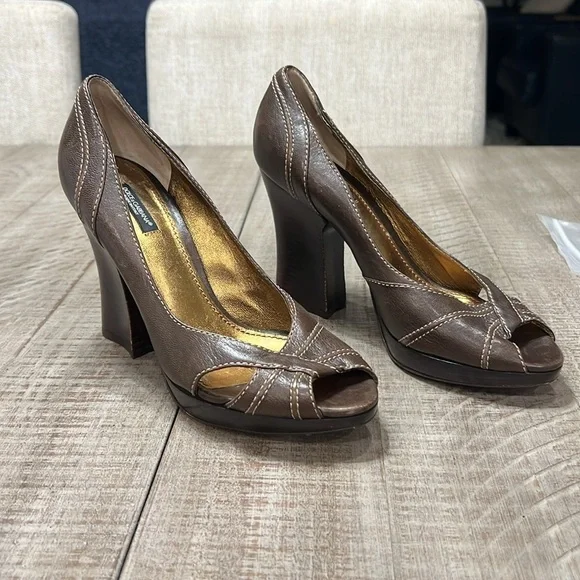 DOLCE & GABBANA Leather Capra Open Toe Heels PumpsSize 39Color BrownMade in ItalyPlatform 1/2”Heel 4”M widthNo scratches to outer leather, few shown on heels as seen in pics.