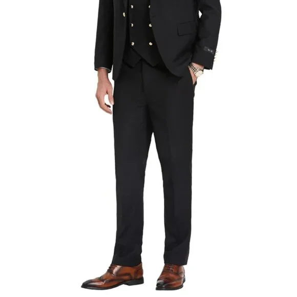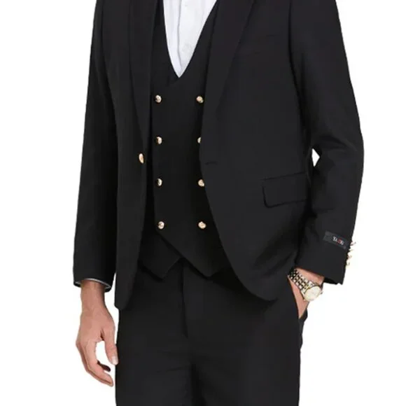Men´s One Button Peak Lapel Vested Suit With Gold Buttons In Black