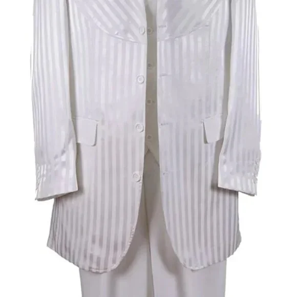 Mens 4 button Semi Wide Leg Shiny Tonal Stripe Fashion Suit in White
