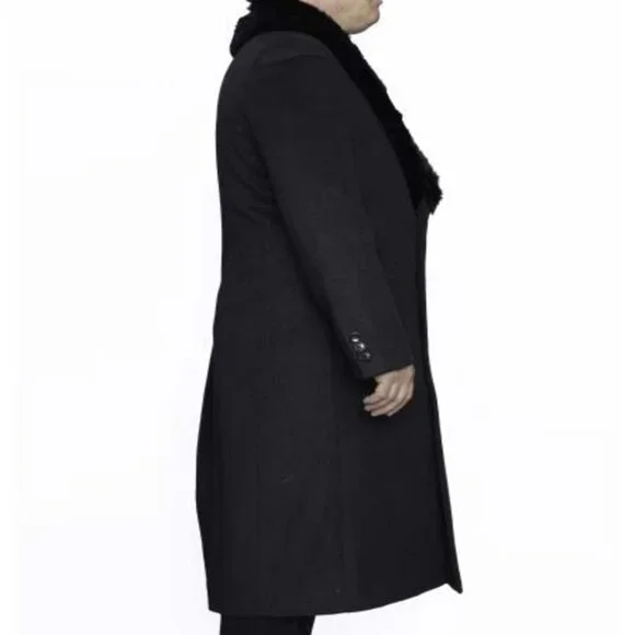 This Mens Overcoat - Topcoat For Men is Perfect Winter or Fall 3 ButtonFull Length 48” LongNotch LapelRemovable Fur CollarMaterial: WoolColor : Charcoal Grey