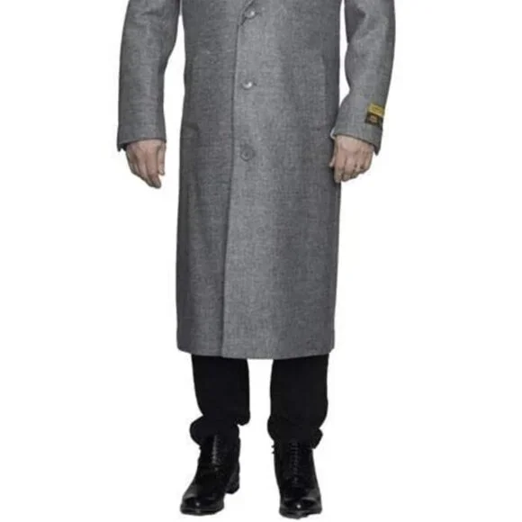 This Mens Overcoat - Topcoat For Men is Perfect Winter or Fall 3 ButtonFull Length 48” LongNotch LapelMaterial : WoolColor : Light Grey