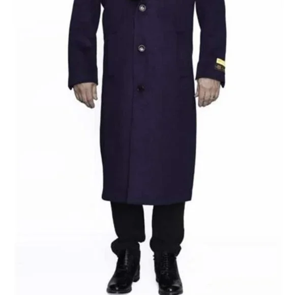 This Mens Overcoat - Topcoat For Men is Perfect Winter or Fall 3 ButtonFull Length 48” LongNotch LapelRemovable Fur CollarMaterial : WoolColor : Purple