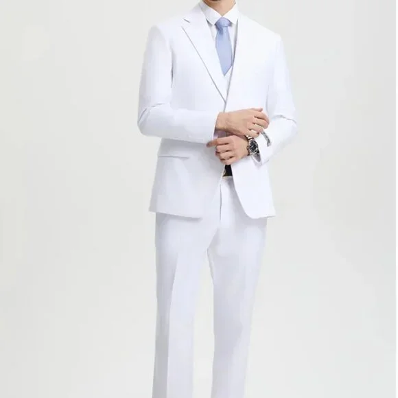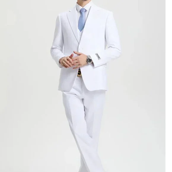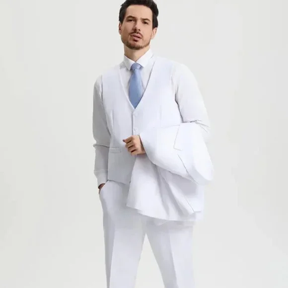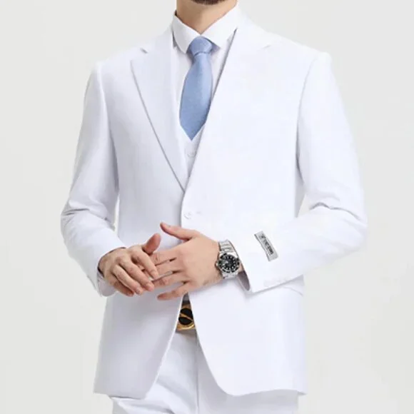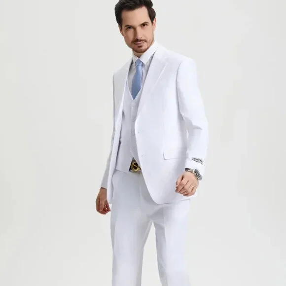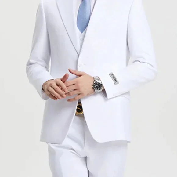 Men´s Two Button Vested Stacy Adams Basic Designer Suit in White