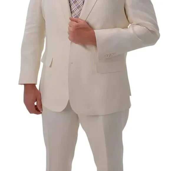 Light Weight Summer Fabric ivory ~ cream ~ off white Beach Wedding outfit - men´s All White Linen SuitFeatures notch lapel and flap pockets100% Linen SuitSingle Pleat Pant2-Button JacketSide VentPolyester LiningMens Linen SuitAvailable Color : Ivory