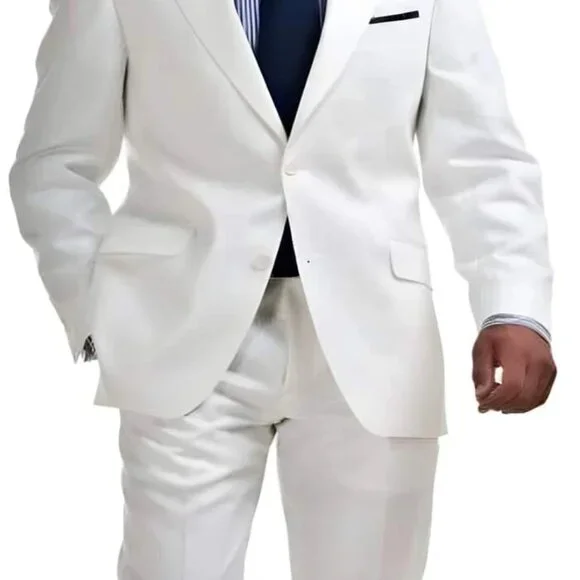 Children Kids Boys Sizes Light Weight Two buttons Tapered cut Half Lined Flat Beach Wedding Outfit Vented Toddler Suit Boy Wedding kids suits available in little boys 3 three piece Groom For Sale Linen - All White Suit2 Button Tapered cut Half Lined Linen suit with Pick Stitching and 2 Side Vents.Pants are Flat fronts and lined front and Back and are standard drop 6 sizing (40R comes 34 waist pants, etc.)