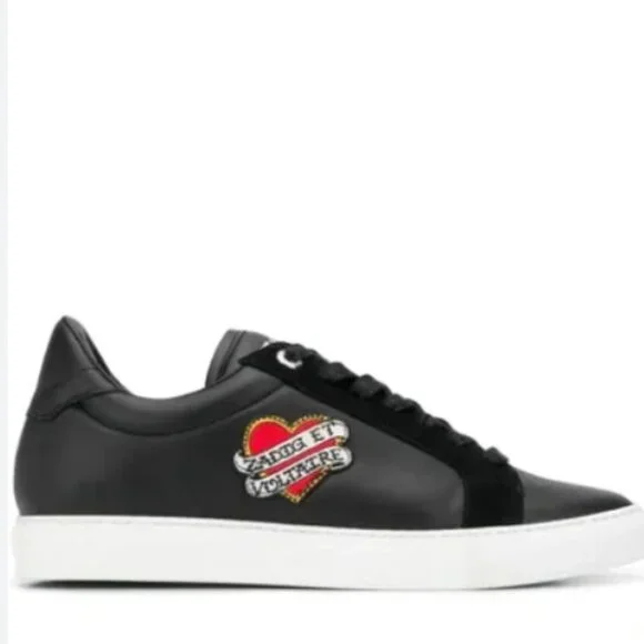 Zadig & Voltaire Zv1747Heart Patch Low-Top Sneakers In Black