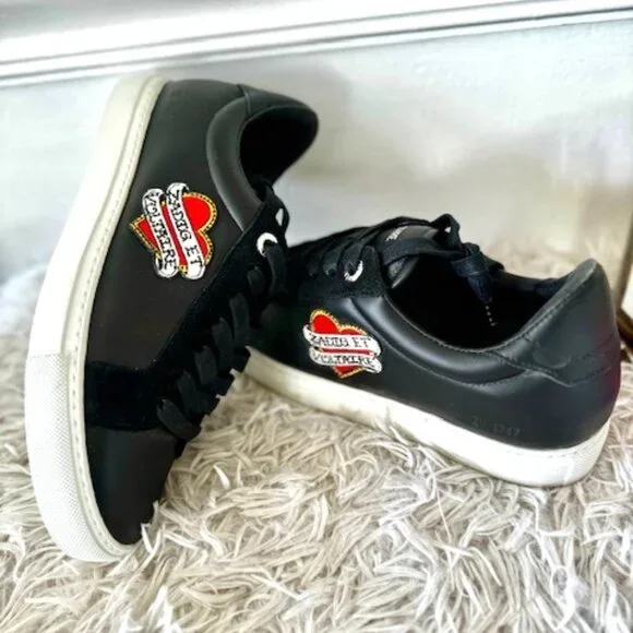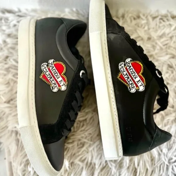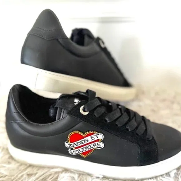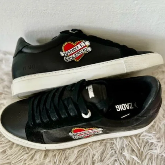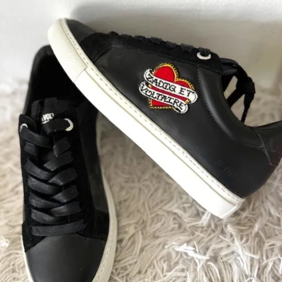 Black smooth matte calf leather ZV1747 heart patch low-top sneakers Logo-embossed tongueRound toeFront lace-up fasteningFlat waxed cotton lacesBranded insole Sole height: 2,5cm Removable Insole-Shiny silver metal eyeletFlat rubber soleAccording to Z&V size chart:Size 38 is a US size 8Brand new without the box.