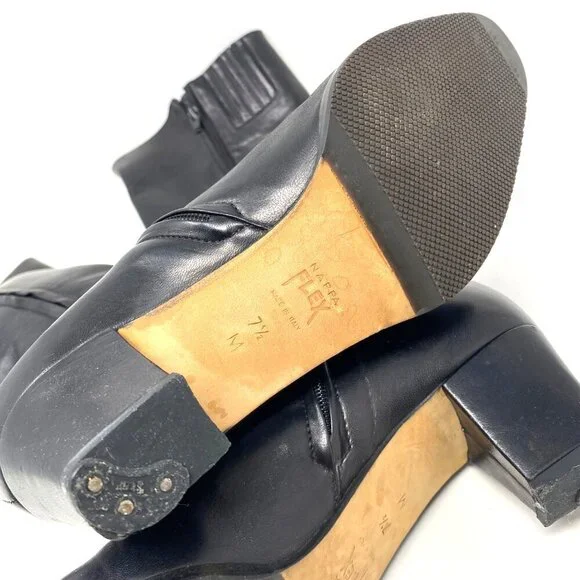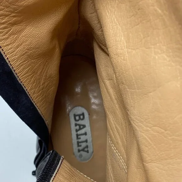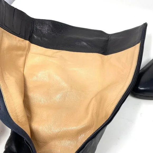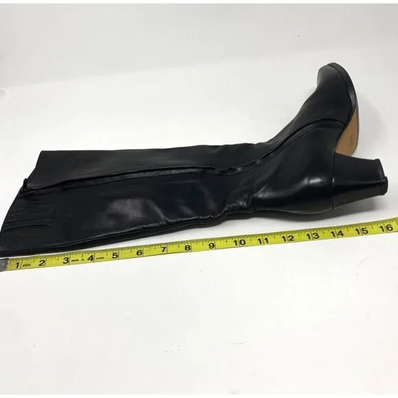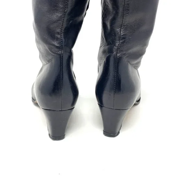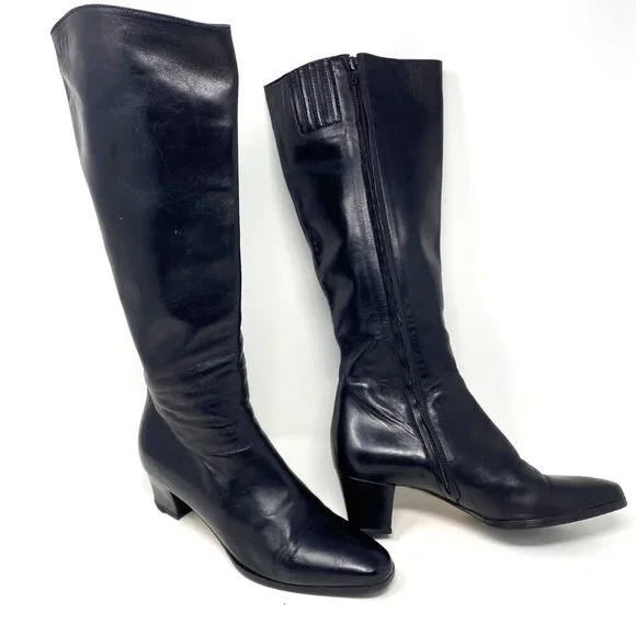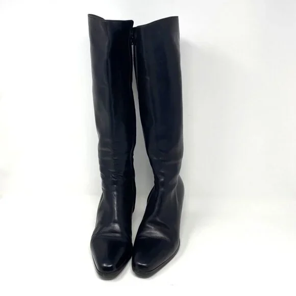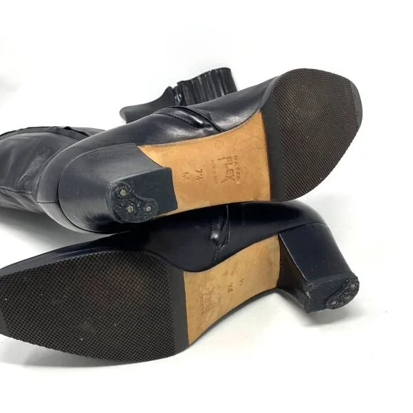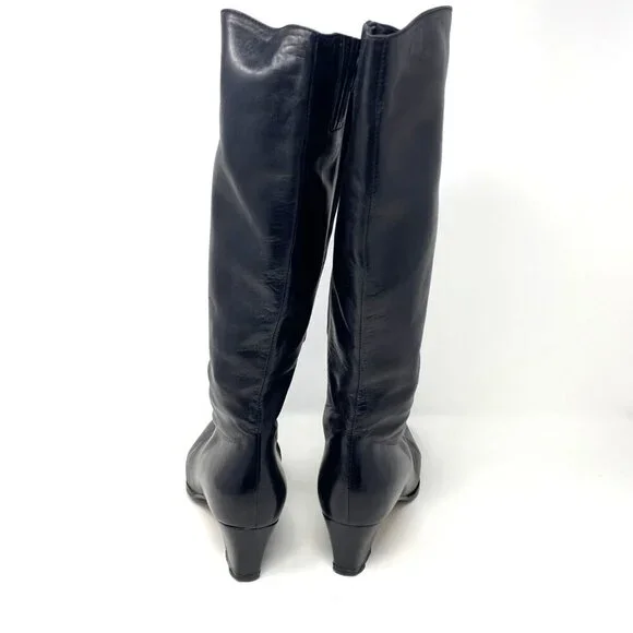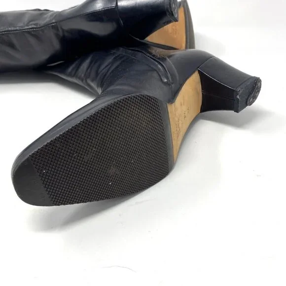 Vintage Bally Black Knee High Boots Nappa Flex Leather Block Heels 2" Size 7.5