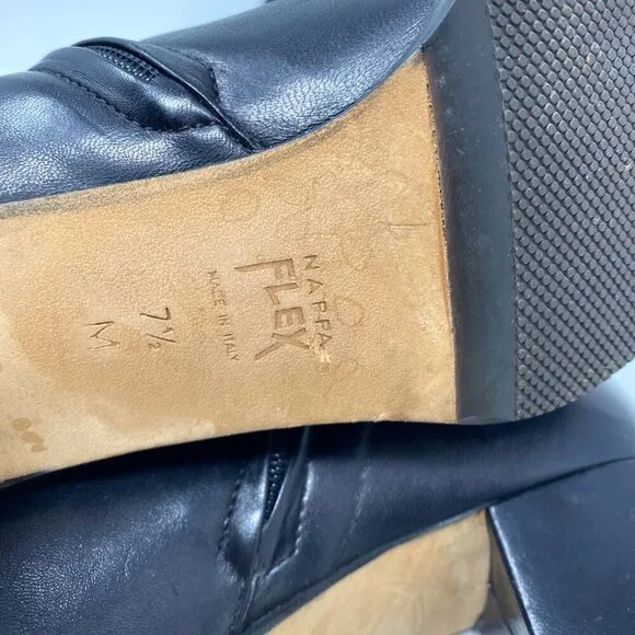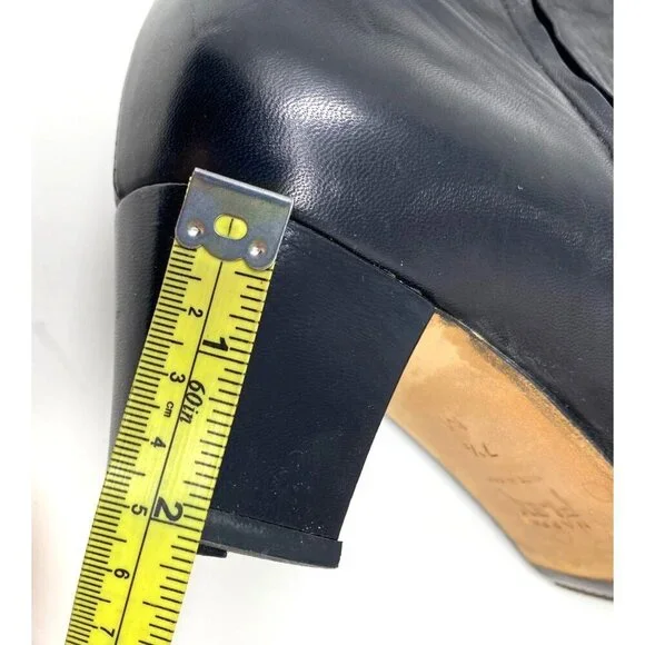 Preowned in excellent conditionMade in ItalyBlock heels 2"Square toeSoft leatherInner zip