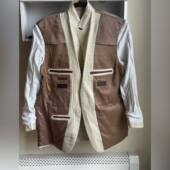 BYRON British Style Kensington Luca Di Marco Men’s Sport Coat Blazer Size 44RSize 44RMade in Italy Up for your consideration and pleasure is an elegant BYRON British Style Kensington Luca Di Marco Men’s Sport Coat Blazer Size 44R, Made in Italy in very excellent condition as shown in the pictures. blazer by Luca di Marco. Features a sophisticated cream color. Perfect for formal occasions.Measurements (laying flatin Inches)Armpit to Armpit: 27.5”Neck seam to bottom (Overall): 31”Shoulder to Cuff: 24”Shoulder to shoulder 22”Please make sure that you check and view all the pictures provided and ask questions whenever in doubt before you make a purchase. Wishing you the best of luck and a memorable and happy shopping experience.