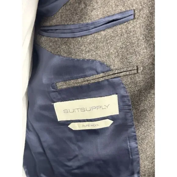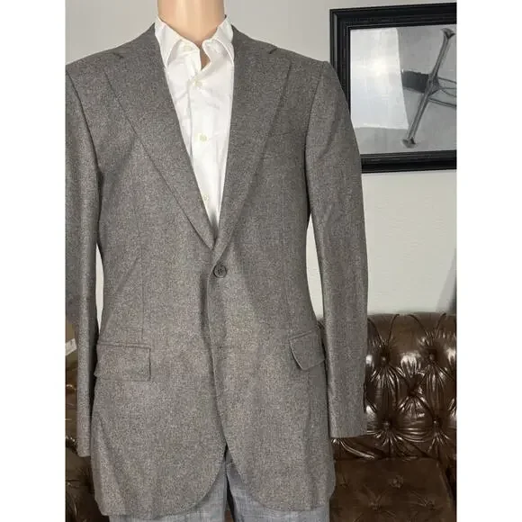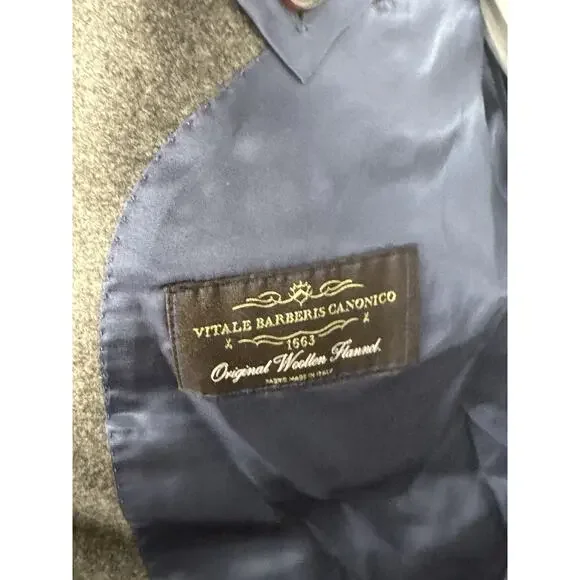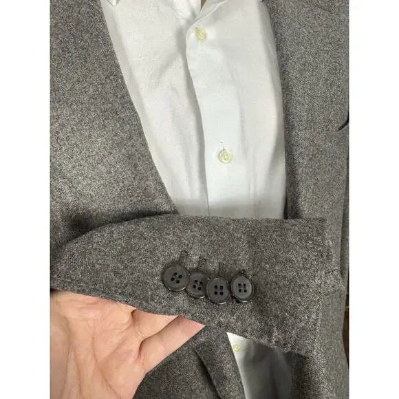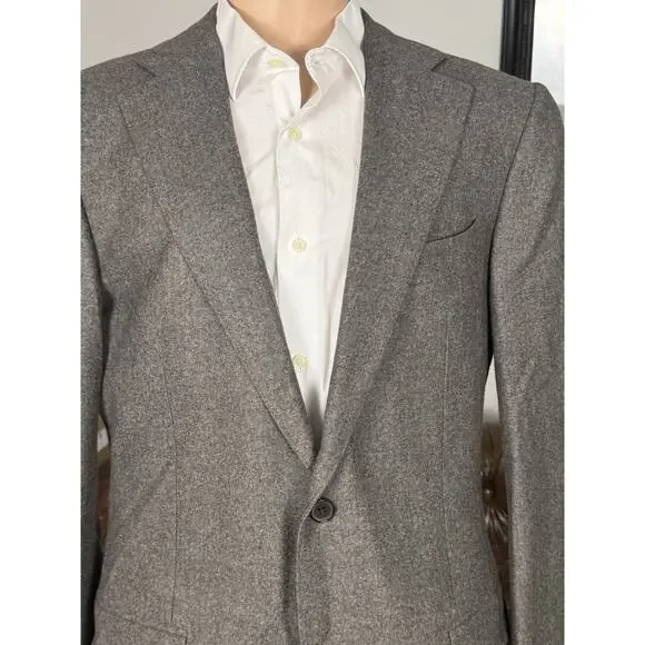 Excellent condition, only worn once.Functional cuffs, excellent quality flannel fabric from vitalis barberis canonico mill, half canvassed, slim cut, bemberg lining, high quality at an excellent price in a beautiful color perfect for fall/winter25.5 inch sleeve length30.5 inch body length22 inch pit to pit19.5 inches across waist18.5 across shoulders