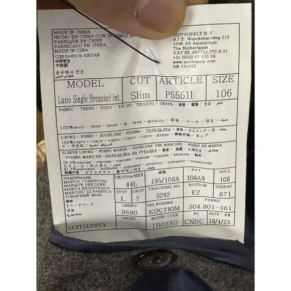 Excellent condition, only worn once.Functional cuffs, excellent quality flannel fabric from vitalis barberis canonico mill, half canvassed, slim cut, bemberg lining, high quality...