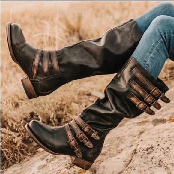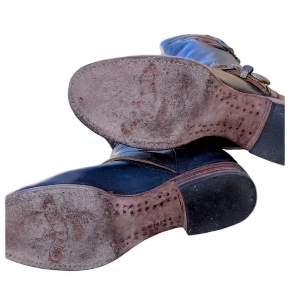 HARD TO FIND!Size 9Condition: Great condition see photos for details!Material: Leather Upper, Fabric Lining,Leather SoleMade in MexicoLow heel for all day comfort!• Back Brass Zip ClosureMemorable Brass Eagle Hardware makes this boot soar above the rest!Contrasting Straps on the shaft and on the ankleTall BootVery hard to find in the black!!Comes from a clean, smoke-free home!11/4" heel height15 3/4" shaft height16 1/4" shaft circumference
