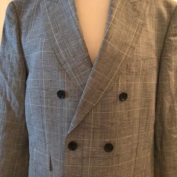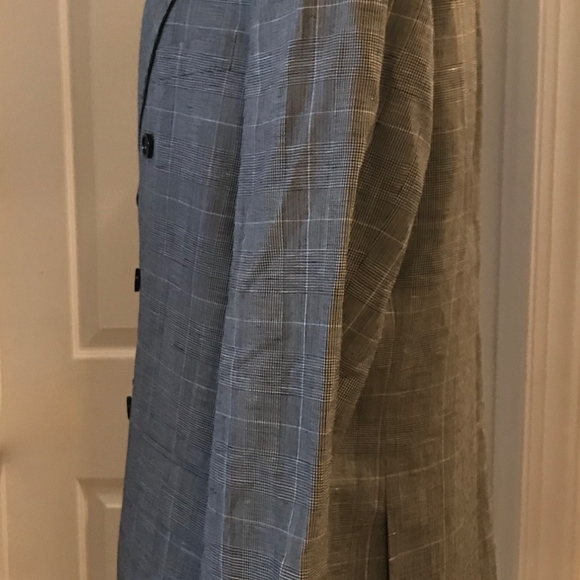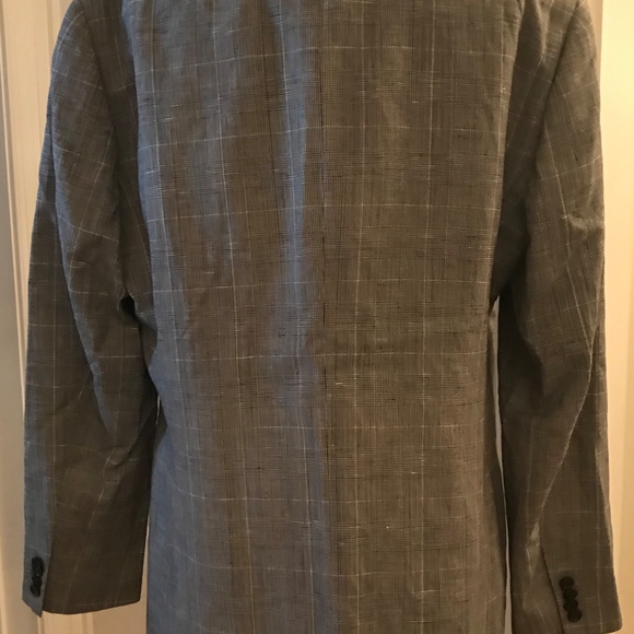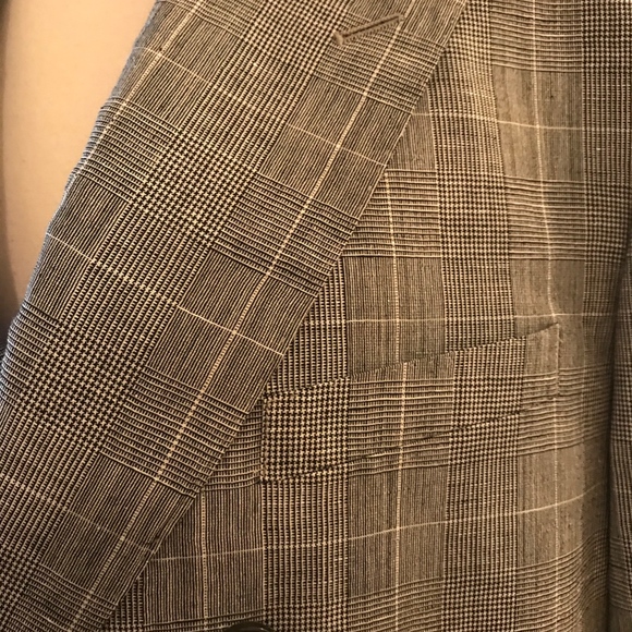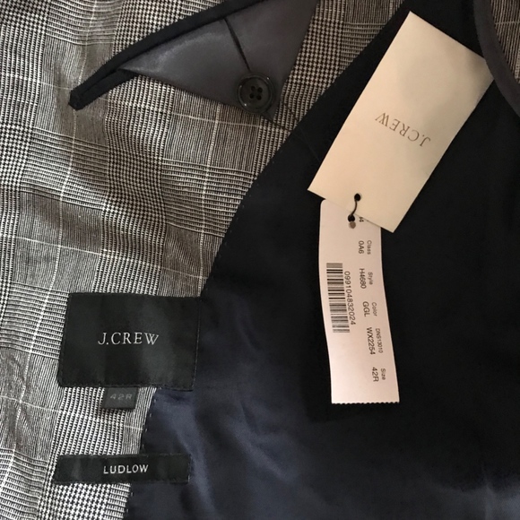 J.CREW Ludlow Slim-fit one-and-a-half-breasted suit jacket in Italian glen plaid wool-linen. SIZE: 42/REGULAR. COLOR: Grey Glen Plaid. ITEM # H4680.This jacket is made in a wool-linen blend from at Lanificio Subalpino, a mill in Biella, Italy, that specializes in making handsome checked, tartan and plaid fabrics. Virgin wool/linen. Subalpino. 2 1/2" notch lapel. Pickstitching along collar, lapel and pockets. Two-button closure. Double vent. Functional buttons at cuffs. Partially lined.