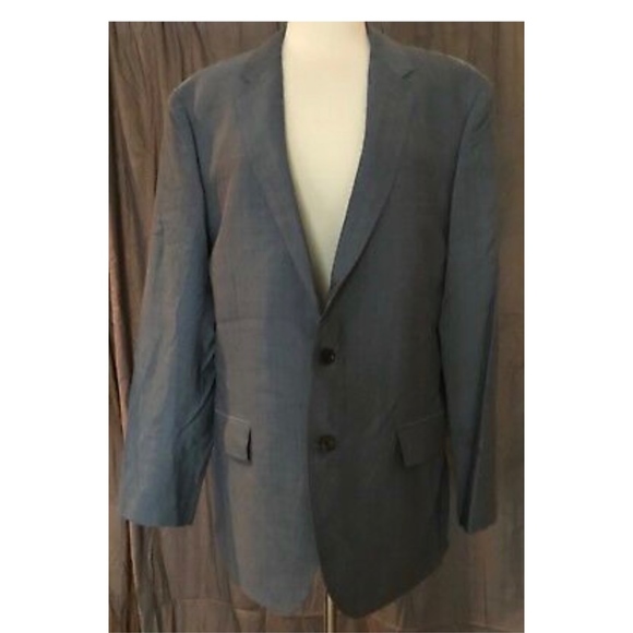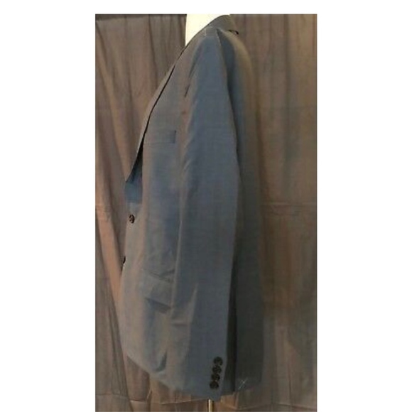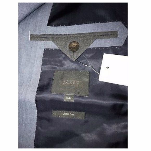 J.CREW LUDLOW SUIT JACKET IN AMERICAN WOOL. SIZE: 44 LONG. COLOR: LIGHT BLUE. ITEM # E7542.AMERICAN WOOL FROM THE AMERICAN WOOLEN CO. MILL. 2 1/2" NOTCH LAPEL. PICKSTITCHING ALONG LAPEL. TWO-BUTTON CLOSURE. DOUBLE VENT. NONFUNCTIONAL BUTTONS AT CUFFS. LINED. TAILORED, MODERN CUT WITH A TRIM SILHOUETTE.FLAT MEASUREMENTS: FROM SHOULDER TO SHOULDER - 18,5", FROM ARMPIT TO ARMPIT - 22,5", WAIST - 21,5", LENGTH FROM SHOULDER TO HEM - 32".BRAND NEW WITHOUT TAG. WAS PURCHASED DIRECTLY FROM J.CREW.