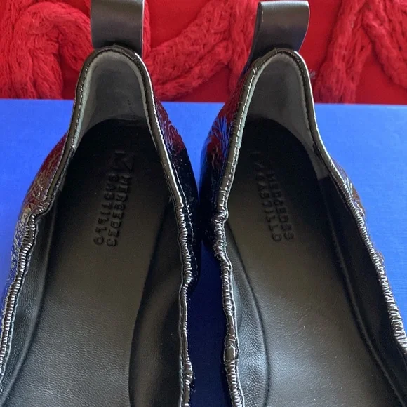 Mercedes Castillo Beautiful Black Patent Leather Stretch Flats New NeverUsed