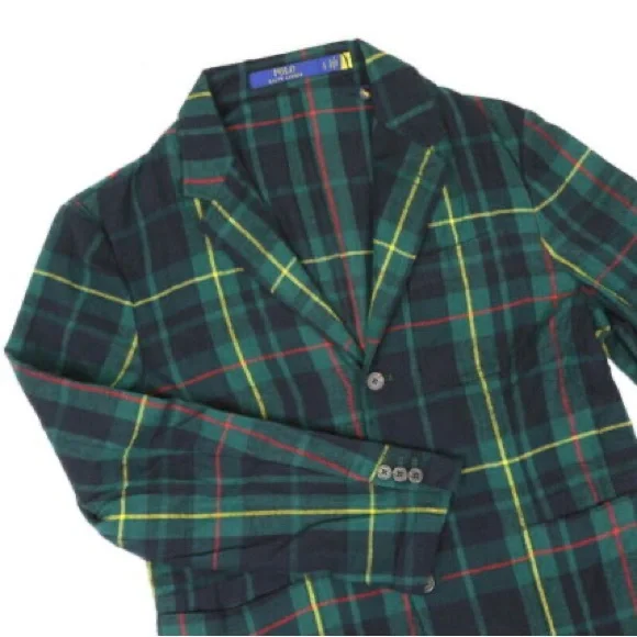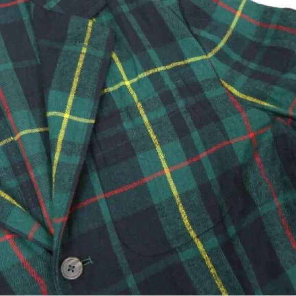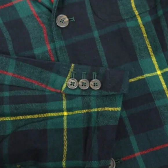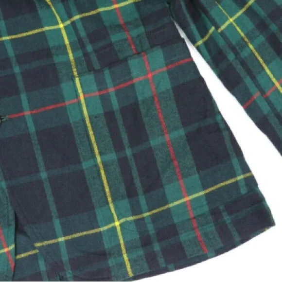 New with tags unlined flannel blazer. Great casual classic piece for chilly temps. Tartan plaid in green, black, yellow, & red. Size men’s small. Length 29”Chest Width 19”Shoulder width 18 6/8”Sleeve length 25 2/8”Hips 18 3/4”