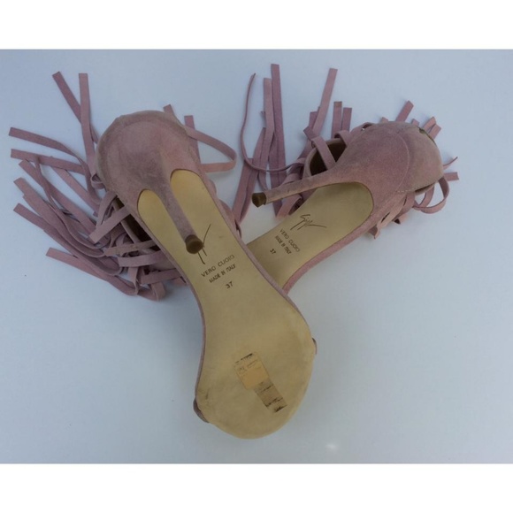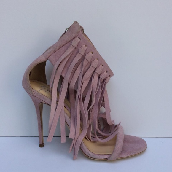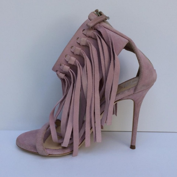 New Store Display Mistico Fringe Suede Leather Sandals. Retail $995.00.Made in Italy.Color: Lilac. Size: 37. Featuring an open toe, a toe strap, an ankle strap, a back zip...